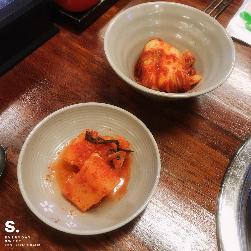 반찬은 김치랑 깍두기가 나와요!