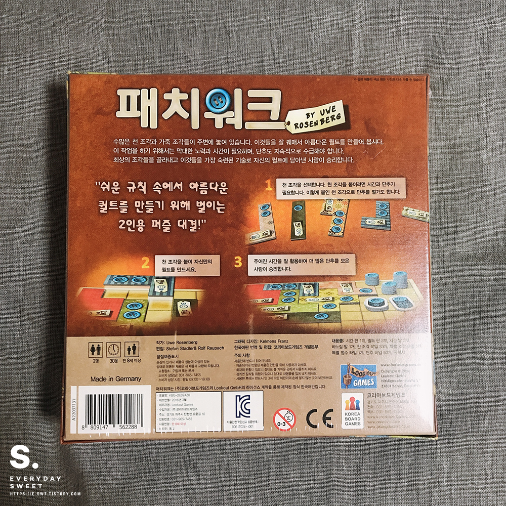남자친구랑 보드게임 카페에가서 해봤던 패치워크를 이제야 구입했어요