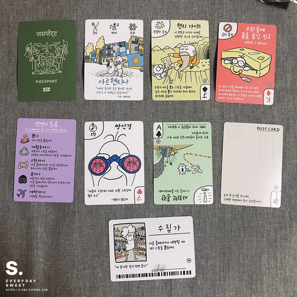 간단한 설명카드, 일반카드, 이벤트, 엽서카드, 캐릭터카드 들이 들어있습니다