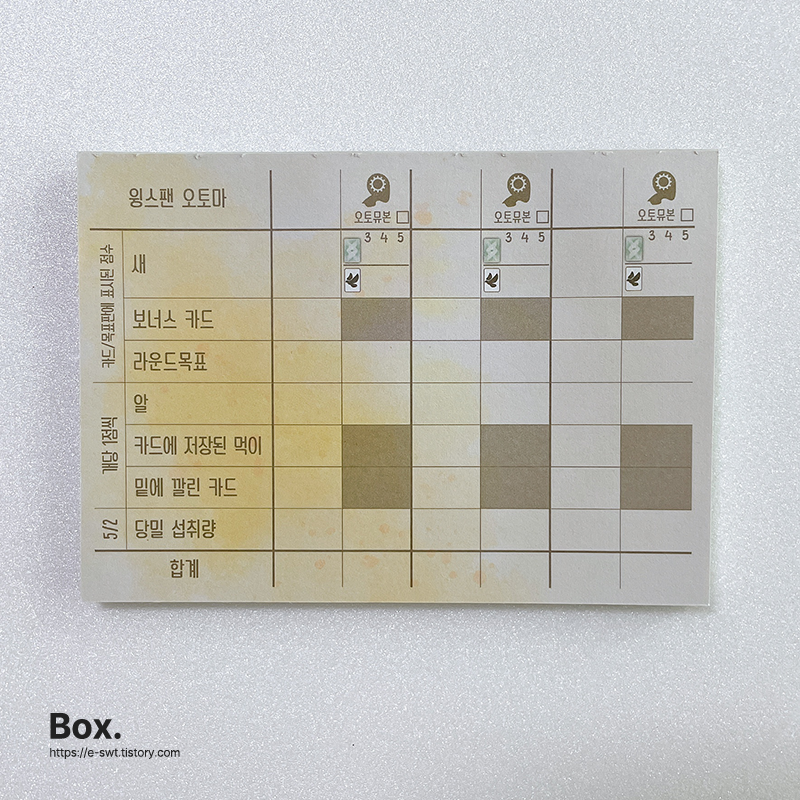 뒷면은 오토마플레이 시 점수용지입니다.