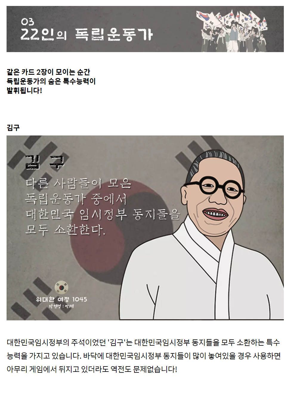 배경은 바로 보시다시피 대한민국의 독립을 위해 투쟁하는