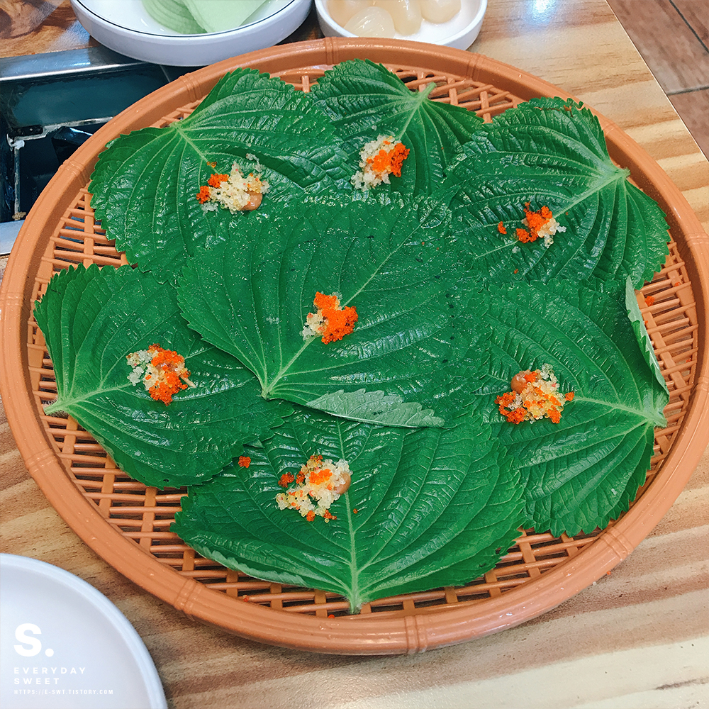 그리고 알이 놓여져있는 깻잎도 함께 나옵니다